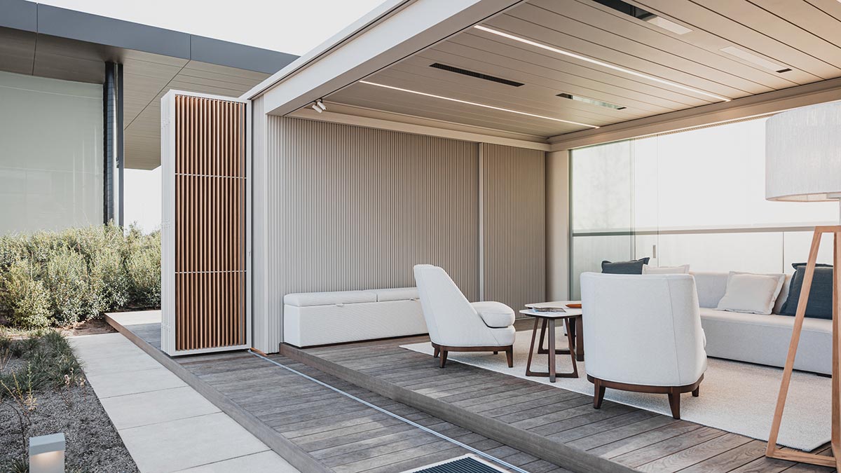 Ein fester Dachaufbau mit stilvoller Ausstrahlung: Algarve® Canvas bietet mit Stahlblech und integriertem Screentuch ein äußerst robustes Ganzjahresdach.