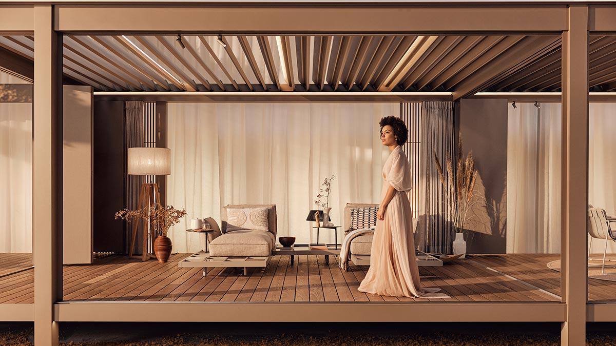 Für alle, die unter freiem Himmel leben möchten – aber nicht auf Komfort verzichten wollen. Die Lamellen lassen sich nach Belieben drehen und sogar zur Seite schieben, für einen freien Blick nach oben.